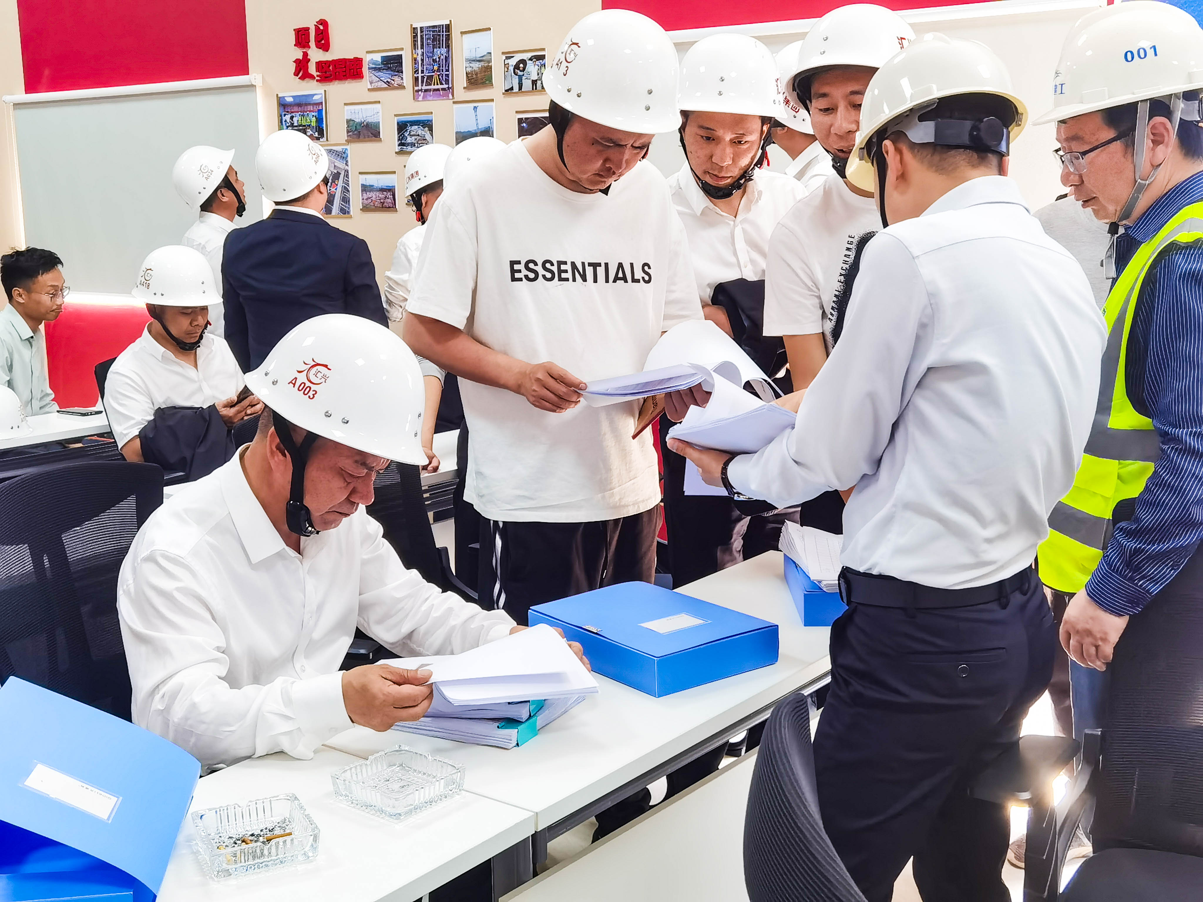 在項目現(xiàn)場,觀摩團聽取了相關(guān)負(fù)責(zé)人對施工建設(shè)、外架施工工藝、標(biāo)準(zhǔn)化工地建設(shè)等情況的匯報,并對先進(jìn)施工工藝、安全資料管理、項目黨建活動開展情況進(jìn)行了交流學(xué)習(xí)。
