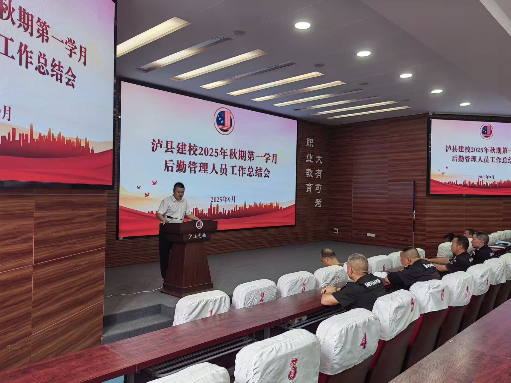 9月28日上午,瀘縣建校和保安公司組織全體后勤工作人員召開(kāi)第一學(xué)月工作總結(jié)會(huì)。會(huì)議系統(tǒng)梳理了開(kāi)學(xué)以來(lái)在校園安全、環(huán)境維護(hù)、設(shè)施保障等方面的工作成效、存在問(wèn)題及下步改進(jìn)方向,向一線(xiàn)員工致以節(jié)日慰問(wèn),并部署下階段重點(diǎn)任務(wù),強(qiáng)調(diào)要持續(xù)優(yōu)化服務(wù)質(zhì)量,筑牢校園安全防線(xiàn)。