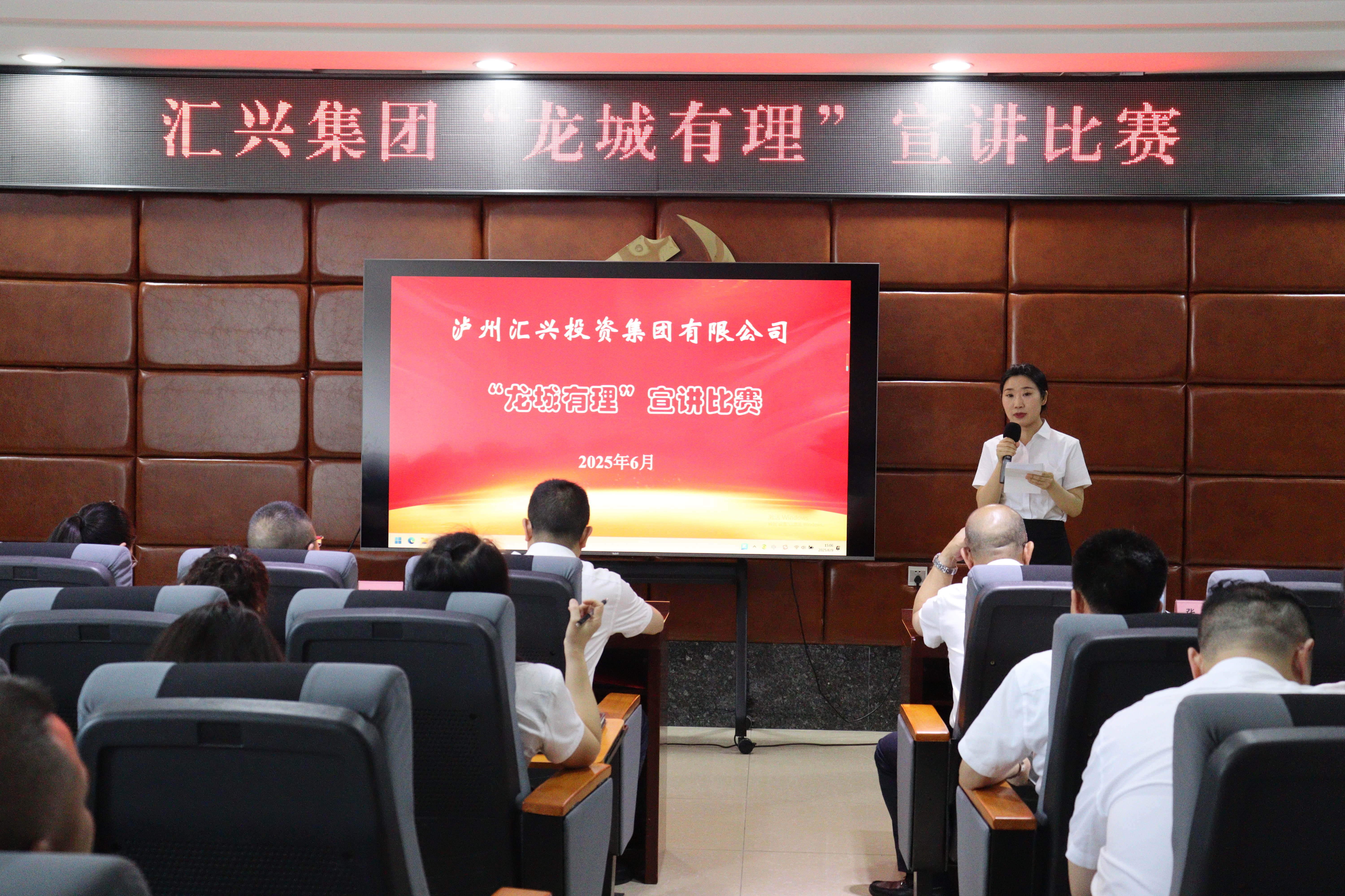 為貫徹落實(shí)黨的二十大和二十屆二中、三中全會(huì)精神,積極響應(yīng)省委、市委、縣委決策部署,推動(dòng)黨的創(chuàng)新理論深入人心,6月9日,瀘州匯興投資集團(tuán)有限公司成功舉辦 “龍城有理” 宣講比賽。匯興集團(tuán)在家領(lǐng)導(dǎo)班子,各支部黨員、預(yù)備黨員、發(fā)展對(duì)象等近100人現(xiàn)場(chǎng)觀賽。